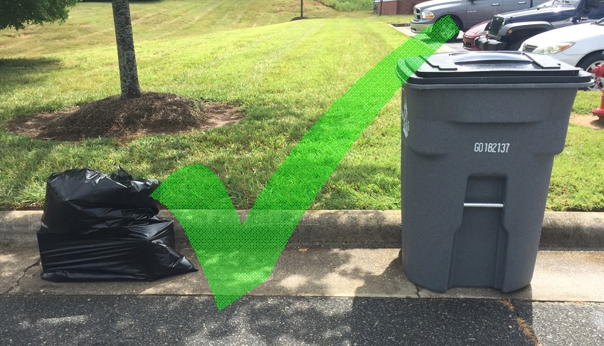 If any services are missed, you must contact us at 704-920-4444 within 24-hours, or items will not be collected until the next scheduled pick up.